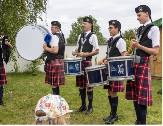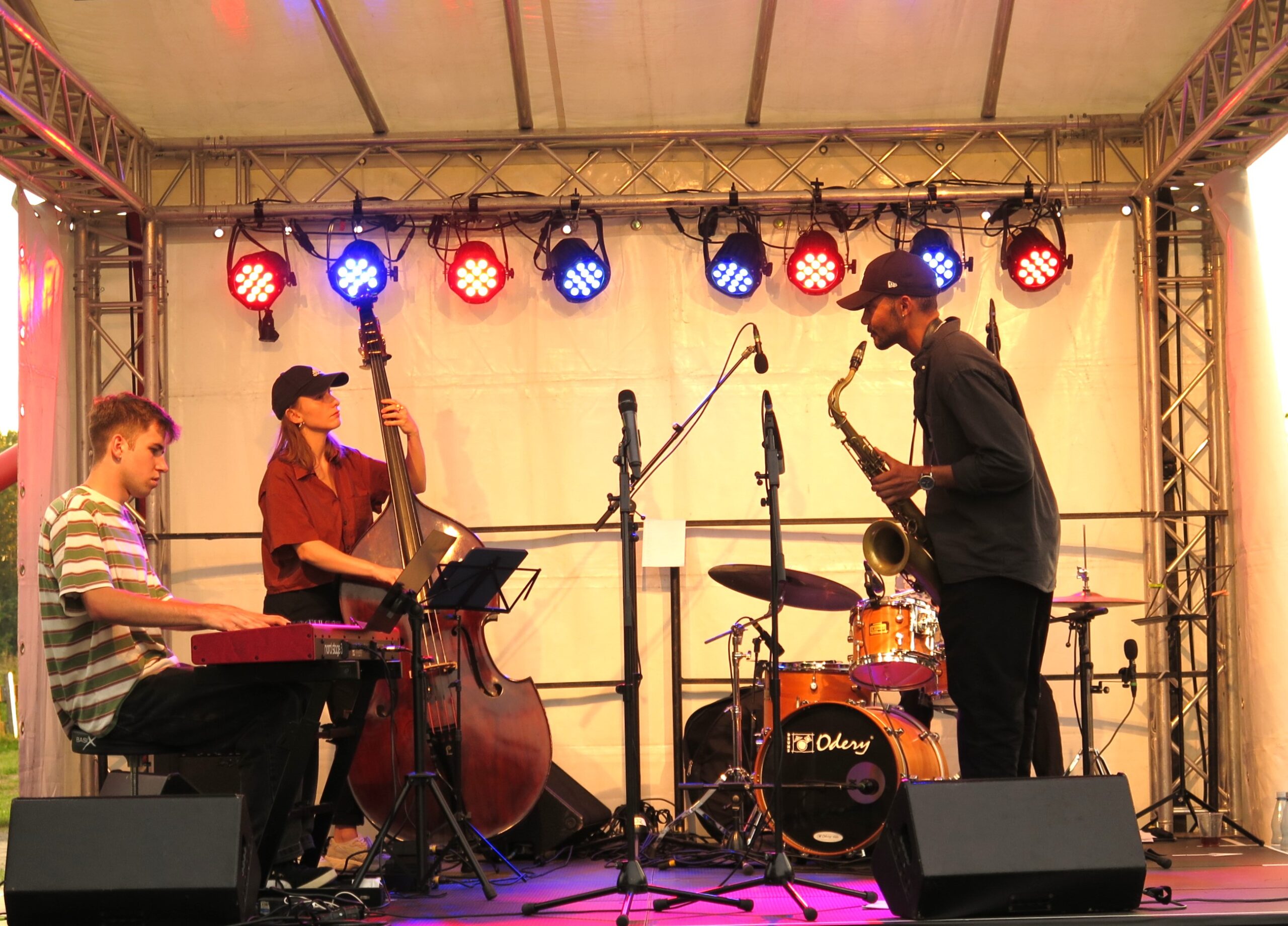 Weiter ging es mit der beeindruckenden Dudelsack-Band CLAN PIPERS, gefolgt von der sympathischen Schülerband der Jugend-Musik- und Kunstschule Maintal. ROBERT HEITMANN brachte mit Blusesrock die legendären Klassiker auf die Bühne und übergab dann DARIUS BLAIR das Mikrofon. Der Maintaler Saxofonist ist Gewinner beim hessischen Wettbewerb „Jugend jazzt“ und war der jüngste Bewerber, der das Frankfurter Jazzstipendium gewonnen hat.